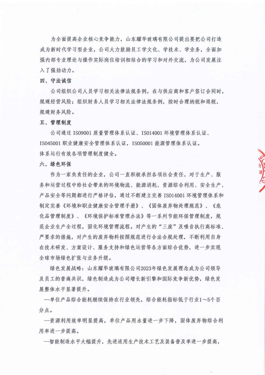 山東耀華玻璃有限公司2023年度溫室氣體排放報告