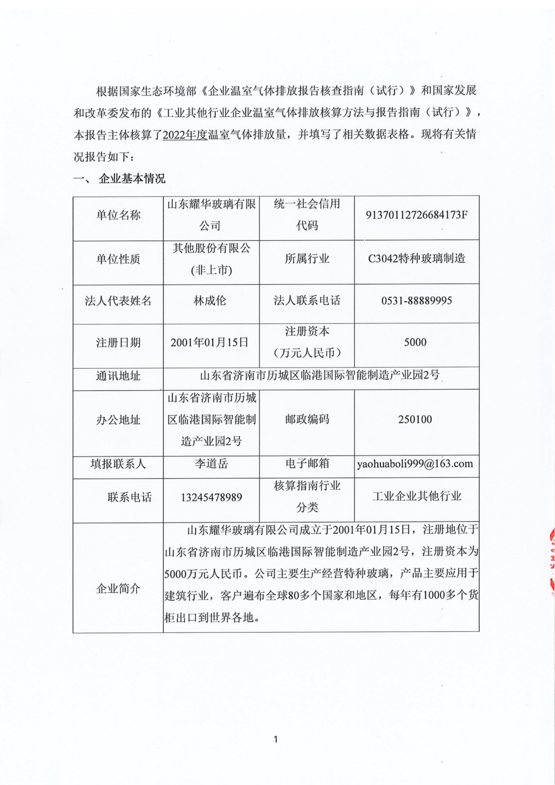 山東耀華玻璃有限公司2023年度溫室氣體排放報(bào)告